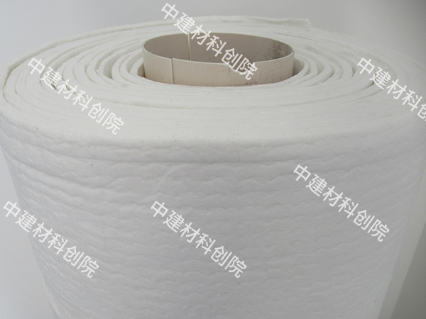 气凝胶陶瓷纤维绝热毡是以特殊工艺制备的纳米多孔气凝胶同陶瓷纤维复合而成的绝热毡品。与气凝胶玻璃纤维绝热毡不同的是,气凝胶陶瓷纤维绝热毡在高温区段(600℃~1000℃)具有独特的绝热保温性能,其特点是耐温更高、高温区段隔热效果更好。